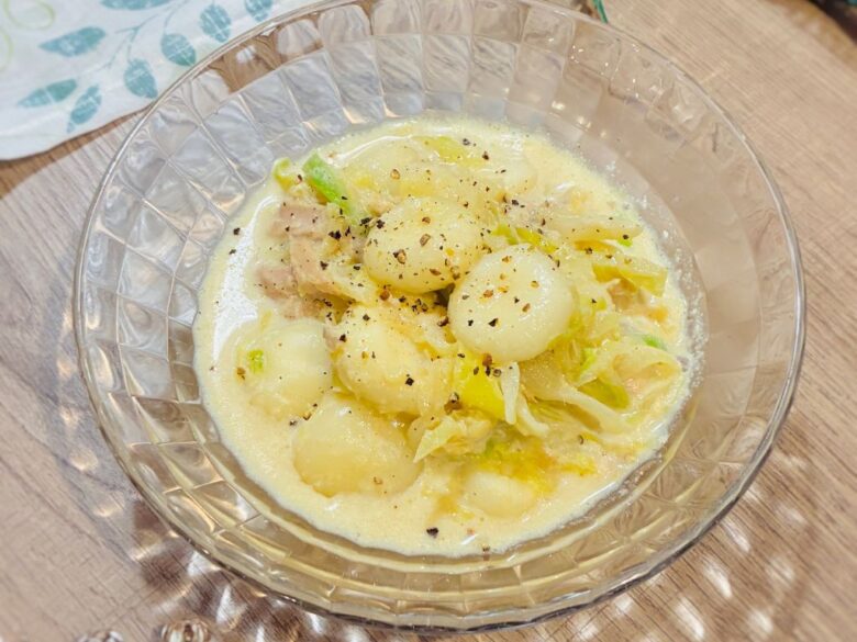 生地を作るのが面倒な時は、市販のニョッキやショートパスタでも代用できますが、